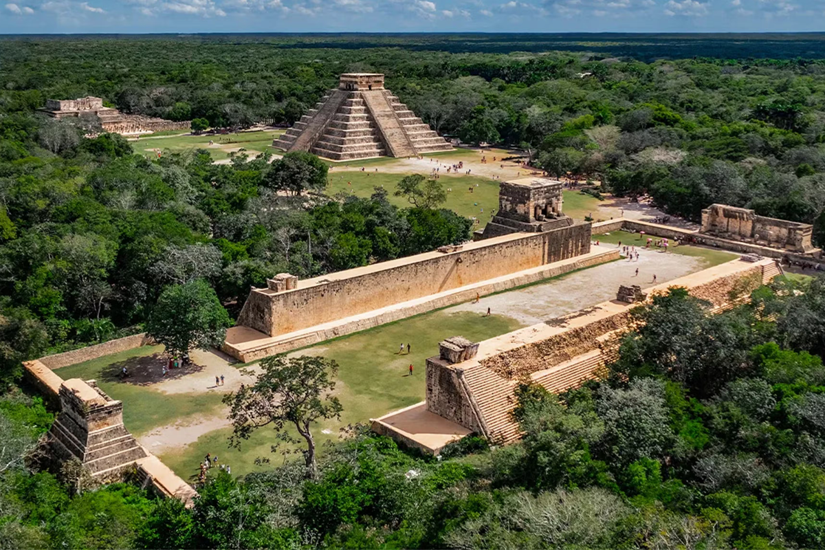 Pirámide de Kukulkán, observatorio astronómico, cenote sagrado y casco histórico de Valladolid.