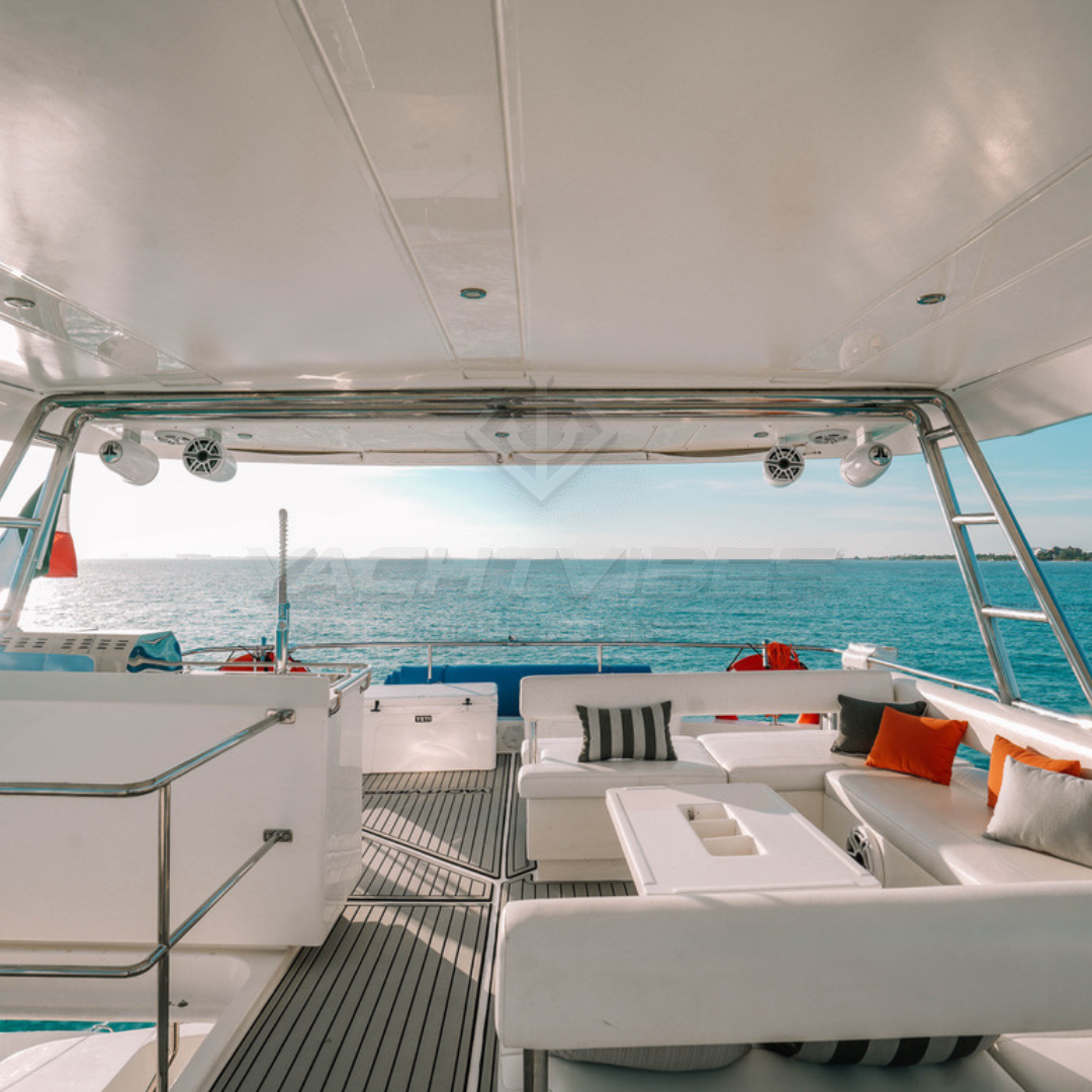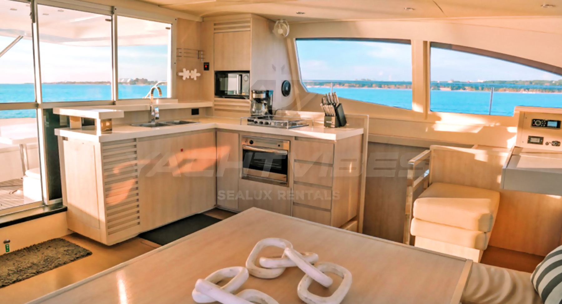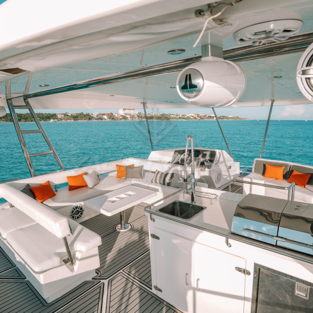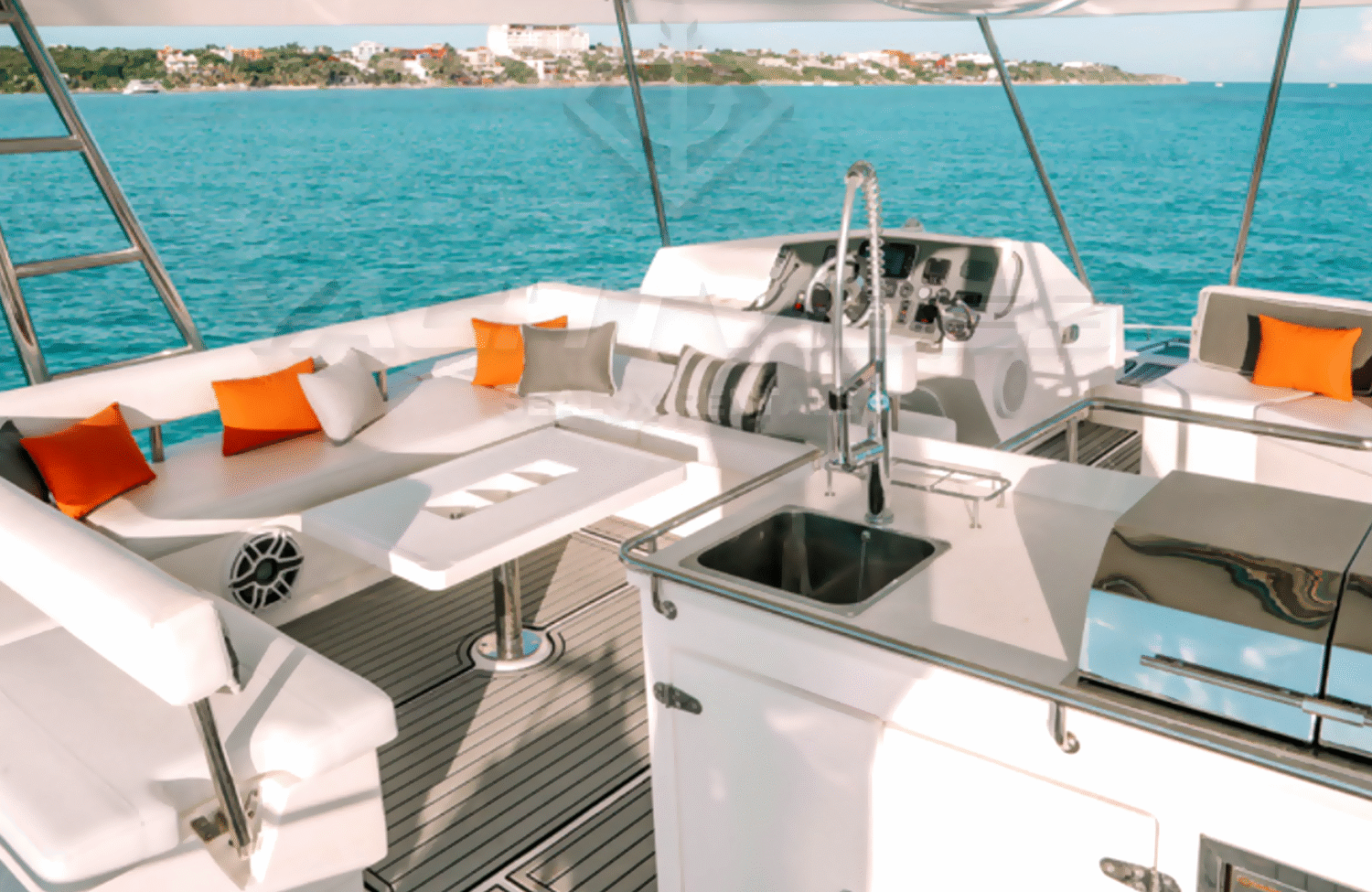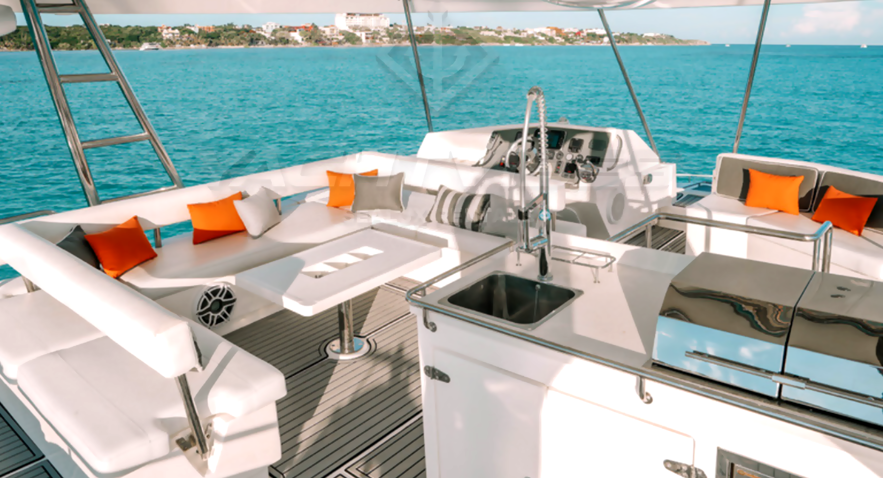Con capacidad para hasta 15 personas, ofrece amplios espacios interiores, tres elegantes camarotes dobles y una cocina completamente equipada. Cada detalle ha sido pensado para brindar una experiencia náutica de primer nivel.