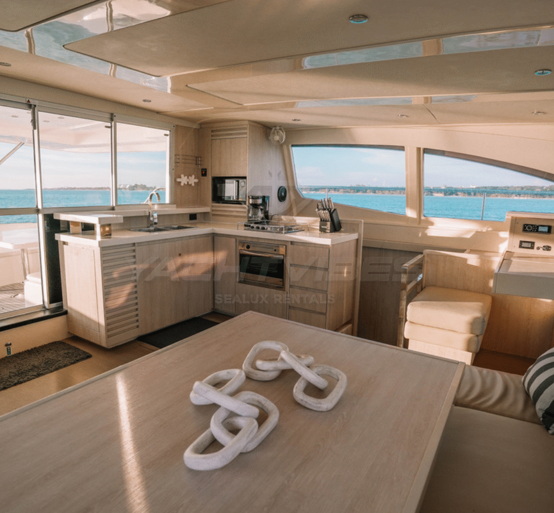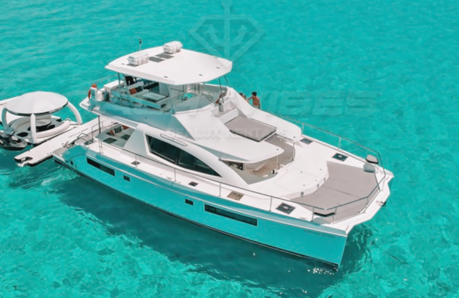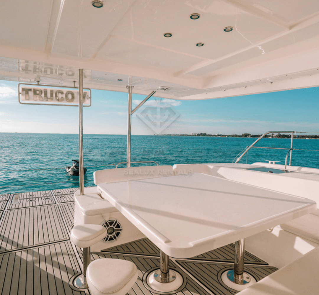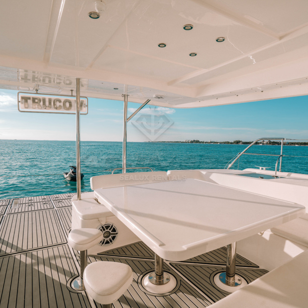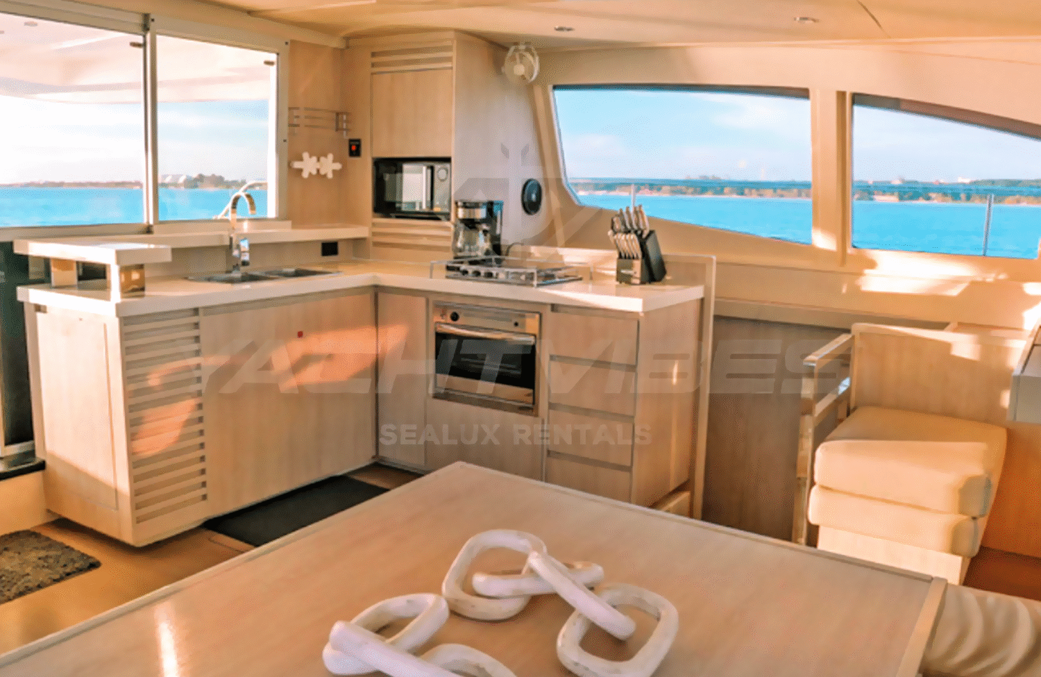 Con capacidad para hasta 15 personas, ofrece amplios espacios interiores, tres elegantes camarotes dobles y una cocina completamente equipada. Cada detalle ha sido pensado para brindar una experiencia náutica de primer nivel.
