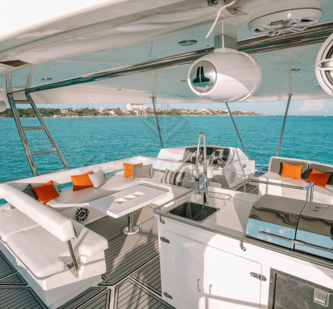 Relájate tomando el sol en la terraza, disfruta una comida al aire libre en la cubierta trasera o simplemente déjate envolver por las vistas panorámicas mientras navegas con total serenidad.