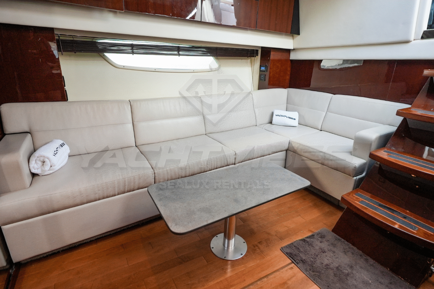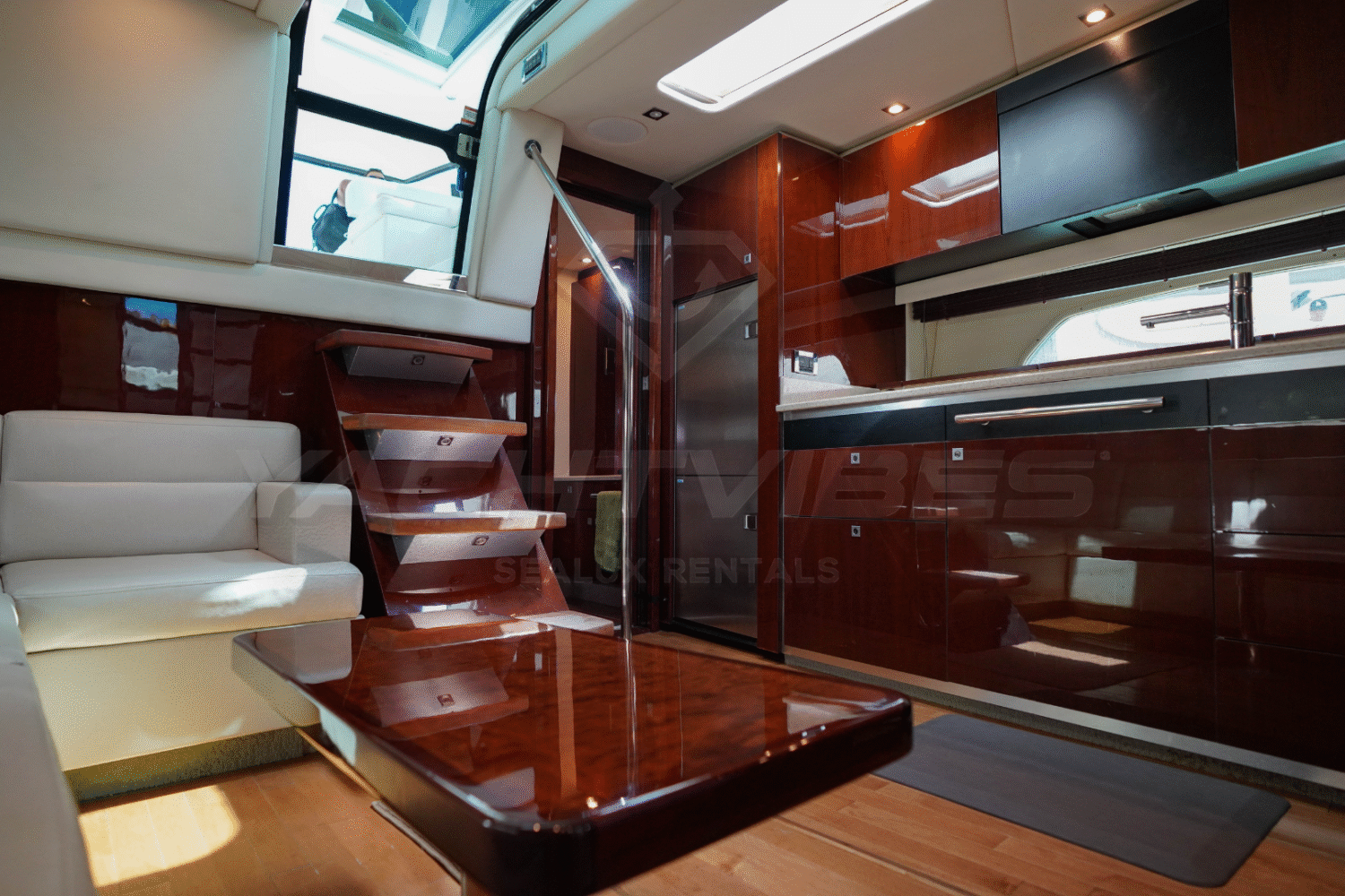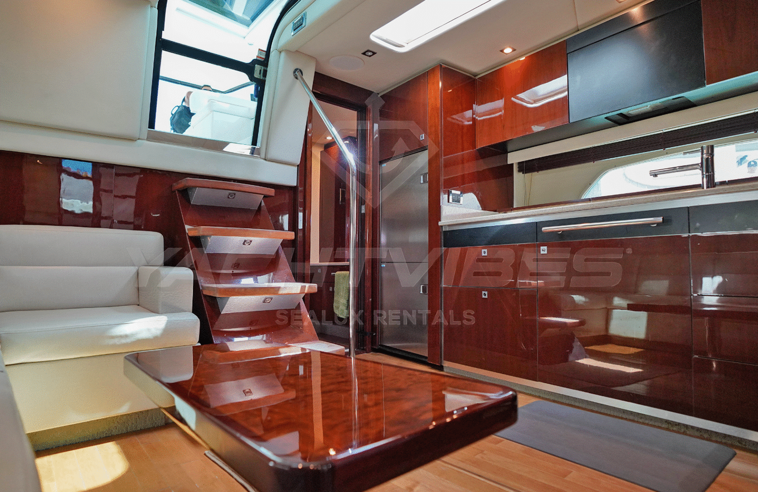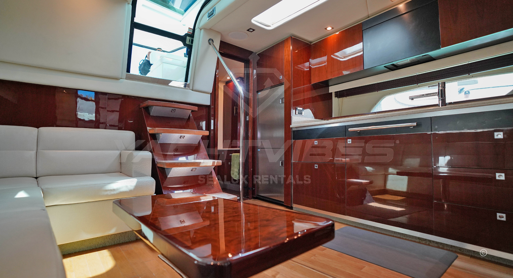 Con capacidad para hasta 15 personas, ofrece amplios espacios interiores, tres elegantes camarotes dobles y una cocina completamente equipada. Cada detalle ha sido pensado para brindar una experiencia náutica de primer nivel.