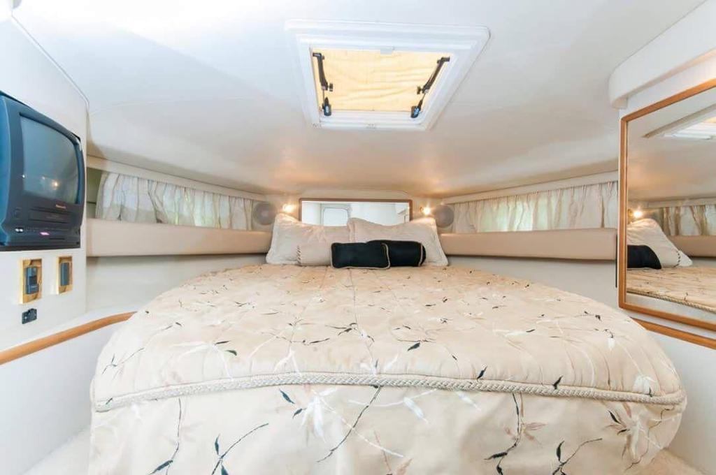 Con capacidad para hasta 15 personas, ofrece amplios espacios interiores, tres elegantes camarotes dobles y una cocina completamente equipada. Cada detalle ha sido pensado para brindar una experiencia náutica de primer nivel.