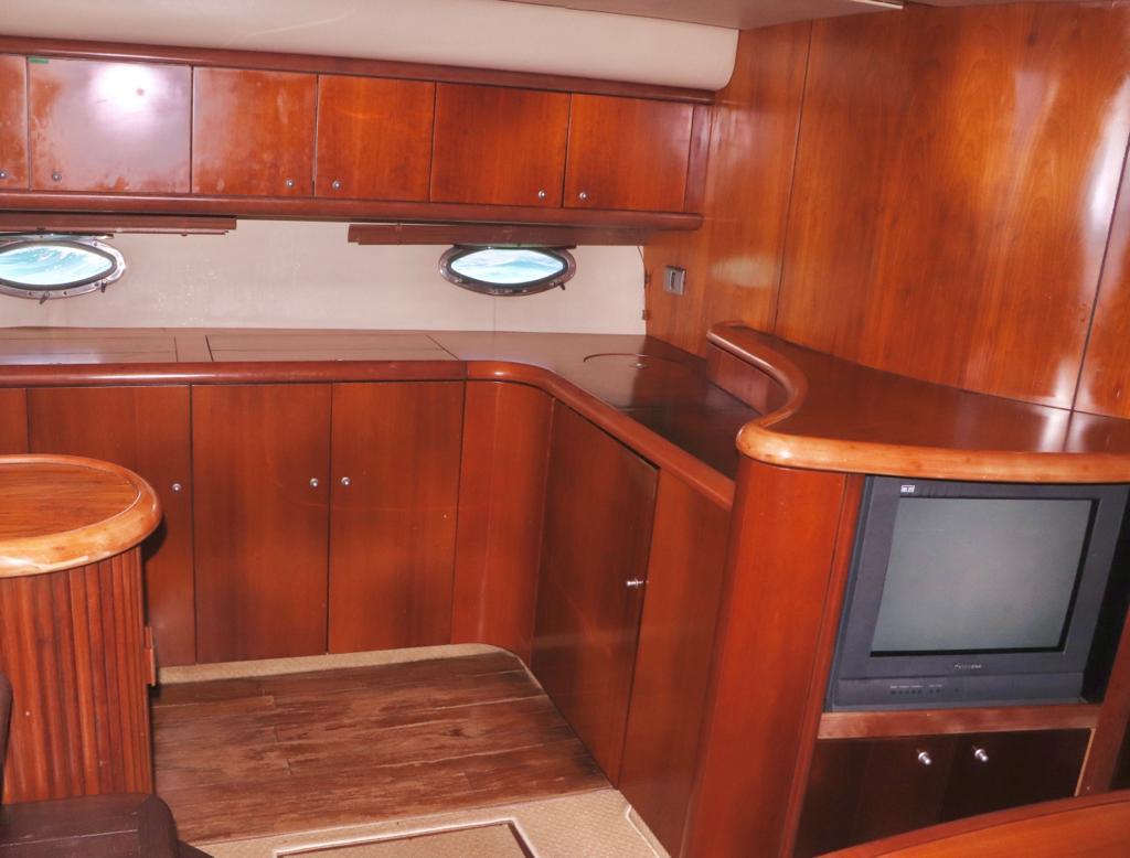Con capacidad para hasta 15 personas, ofrece amplios espacios interiores, tres elegantes camarotes dobles y una cocina completamente equipada. Cada detalle ha sido pensado para brindar una experiencia náutica de primer nivel.